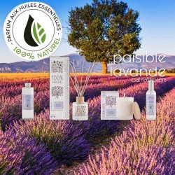 Composée d'huile essentielle de lavande, apaisante et relaxante, cette note nous transporte au coeur de la provence.